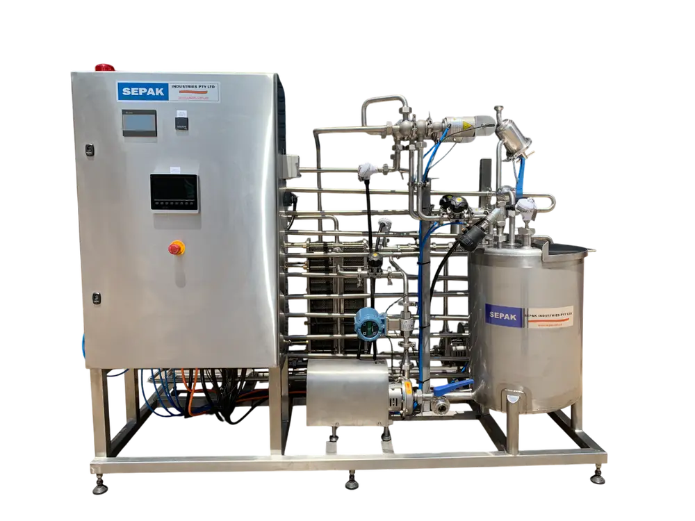 The Sepak Industries SP Series Continuous Pasteuriser is designed for high-throughput, hygienic processing of beverages and liquid foods. Built in Australia to meet strict industry standards (AS3993-2003) as required by Foodsafe NSW, it provides precise temperature control and continuous operation, making it ideal for milk, beer, juices and other liquid products.